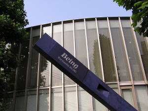 青山葬儀所の入り口に設置された、偲ぶ会の
